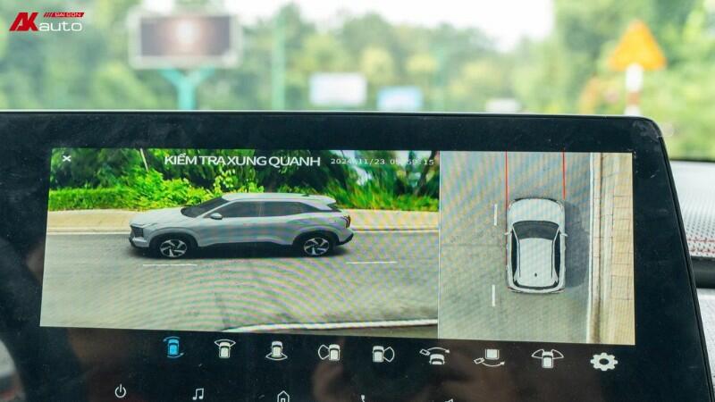 Hệ thống camera 360 có khả năng hiển thị linh hoạt 12 góc nhìn bao quát mọi phía của xe. Người lái dễ dàng thay đổi góc quan sát 2D và 3D phía trước, phía sau xe. Đặc biệt, thiết bị còn cung cấp chế độ quan sát cận cảnh hai bánh trước/sau, toàn bộ sườn xe,… giúp việc căn lề và lùi đỗ xe dễ dàng hơn. Mọi hình ảnh đều được hiển thị trực quan trên màn hình trung tâm, giúp tài xế phản xạ nhanh chóng, giảm thiểu các tình huống va quẹt không đáng có.