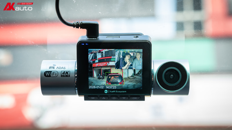 - Camera trước 4K Ultra HD: Góc quay rộng 180°, ghi hình sắc nét phía trước xe, dễ dàng nhận diện các chi tiết quan trọng như biển số và tình huống giao thông.