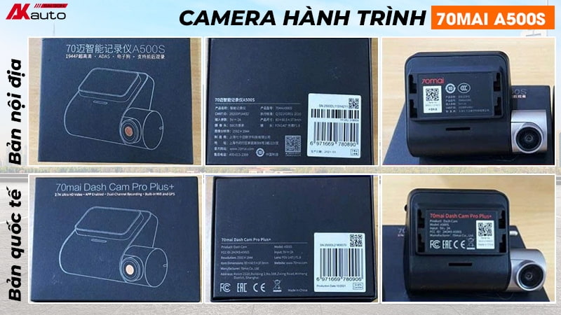 Bạn có thể phân biệt camera hành trình 70mai A500S nội địa và quốc tế thông qua ngôn ngữ hiển thị trên thiết bị và thông tin in trên hộp sản phẩm.