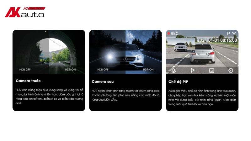 Là phiên bản nâng cấp từ dòng A500S nổi tiếng, camera hành trình 70mai A510 mang đến trải nghiệm ghi hình ấn tượng với nhiều cải tiến đáng giá. Thiết bị được trang bị cảm biến Sony Starvis 2 hiện đại, hỗ trợ ghi hình độ phân giải 3K sắc nét, công nghệ HDR và kết nối 4G giúp giám sát đỗ xe hiệu quả. Trong bài viết này, hãy cùng AKauto tìm hiểu chi tiết về tính năng và lý do vì sao 70mai A510 là lựa chọn lý tưởng cho xế yêu.