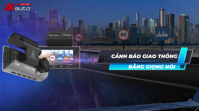 Camera hành trình Vietmap M1 được tích hợp tính năng cảnh báo giao thông bằng giọng nói, giúp tài xế nhanh chóng nhận biết các biển báo quan trọng trong quá trình di chuyển. Hệ thống sẽ đưa ra thông báo kịp thời để người lái chủ động điều chỉnh tốc độ và cách xử lý khi tham gia giao thông.