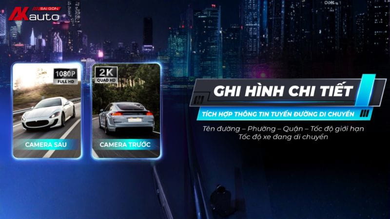 Hệ thống camera trước – sau ghi hình hành trình kèm thông tin tuyến đường