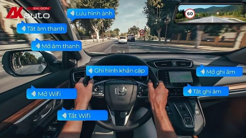 Camera Vietmap R440 hỗ trợ điều khiển bằng giọng nói tiếng Việt, giúp người lái thao tác nhanh mà không cần chạm vào màn hình trong lúc đang lái xe. Người dùng có thể thực hiện nhiều lệnh quen thuộc như: “Lưu hình ảnh”, “Tắt âm thanh”, “Mở âm thanh”, “Mở Wifi”, “Tắt Wifi”, “Ghi hình khẩn cấp”, “Mở ghi âm”, “Tắt ghi âm”. Tính năng này giúp việc sử dụng camera trở nên thuận tiện hơn và hạn chế thao tác khi đang điều khiển xe.