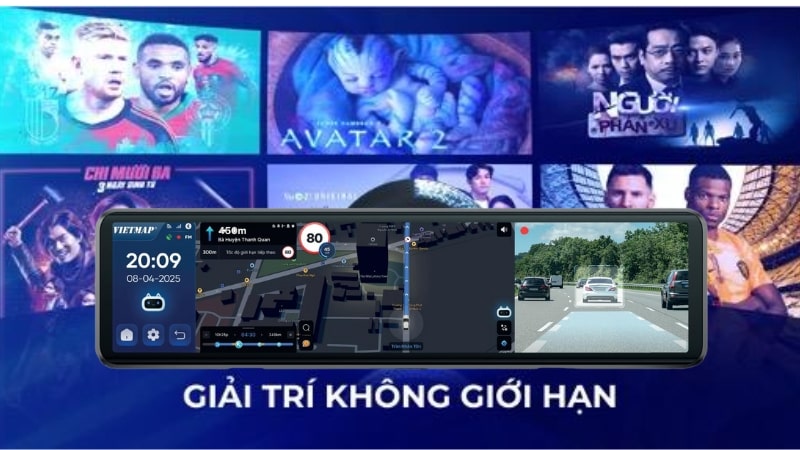 Hơn cả một thiết bị ghi hình, camera hành trình gương Vietmap V740 còn mang đến người dùng không gian giải trí không giới hạn với ứng dụng Vietmap Play độc quyền của Vietmap. Thiết bị cho phép người dùng xem Youtube, nghe nhạc MP3, phát radio, xem truyền hình trực tiếp chỉ với vài thao tác đơn giản. Giờ đây, anh em chủ xe có thể thư giãn trong chính xế yêu của mình, tận hưởng những hành trình thú vị.