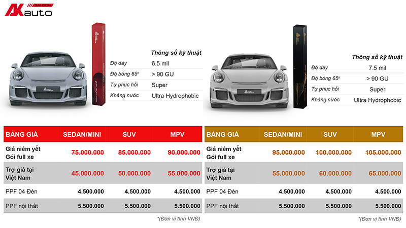 Giá dán PPF Avery Dennison trọn gói full xe dao động từ khoảng 45.000.000đ – 65.000.000đ tùy vào dòng xe và gói dán. Mức đầu tư này được đánh giá là tương xứng với những giá trị mà sản phẩm này mang lại.