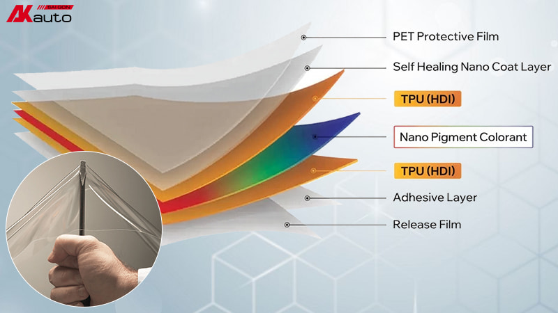 - Lớp vật liệu nền TPU: Đây là phần lõi quyết định khả năng đàn hồi và khả năng chịu lực của tấm phim. Lớp này giúp PPF ôm sát bề mặt sơn xe, duy trì độ ổn định của film trước yếu tố môi trường.