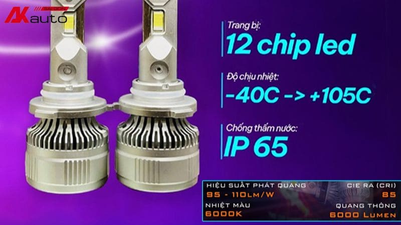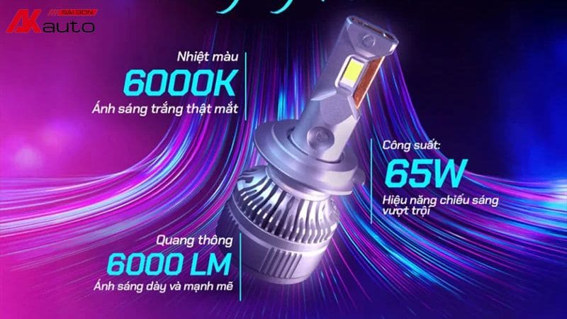 - Cường độ sáng đạt 6000 lumen, gấp nhiều lần so với bóng đèn halogen truyền thống (chỉ khoảng 900 – 1000 lumen).
