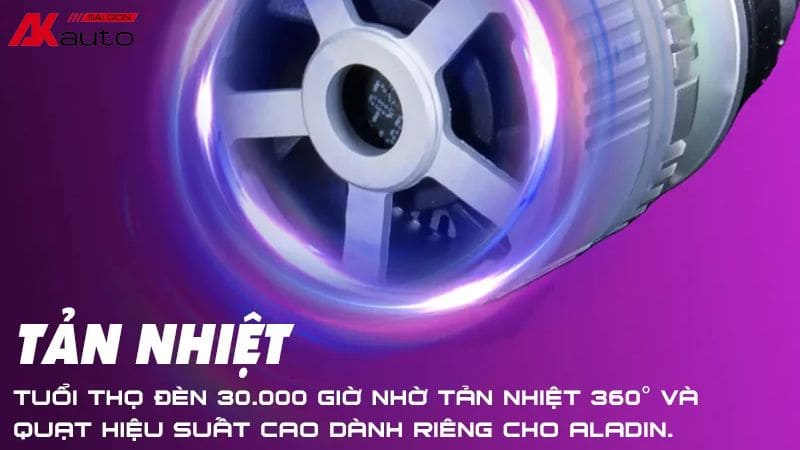 Cảm biến nhiệt độ thông minh được tích hợp giúp kiểm soát và điều chỉnh nhiệt độ, độ sáng của đèn theo thời gian thực. Tính năng này không chỉ tối ưu hóa hiệu suất chiếu sáng mà còn kéo dài tuổi thọ, giảm thiểu chi phí bảo trì, thay thế. Quạt tản nhiệt hoạt động với tốc độ 7000 vòng/phút đảm bảo đèn luôn hoạt động ổn định, kể cả trong điều kiện khắc nghiệt. Sự kết hợp hoàn hảo giữa công nghệ tiên tiến và hiệu suất vượt trội khẳng định Aladin Domax Light là giải pháp chiếu sáng tối ưu cho mọi phương tiện.