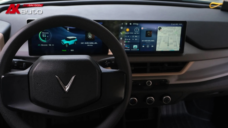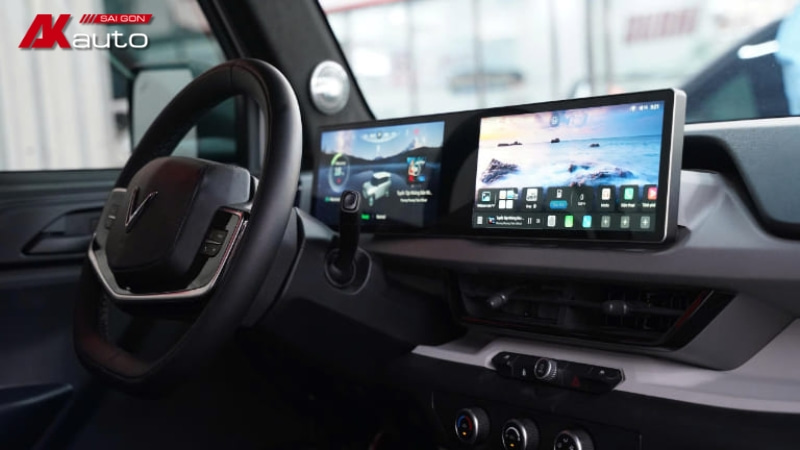 Điểm đặc biệt của loại màn hình Android VF3 này là sự phối hợp giữa hệ điều hành Android 13 và giao diện VinFast OS, giúp người dùng vừa giải trí đa phương tiện qua SIM 4G, VietMap Live vừa dễ dàng theo dõi các thông số của xe điện. Ngoài ra, thiết bị còn hỗ trợ kết nối CarPlay, Android Auto không dây và tích hợp camera 360 tùy phiên bản.