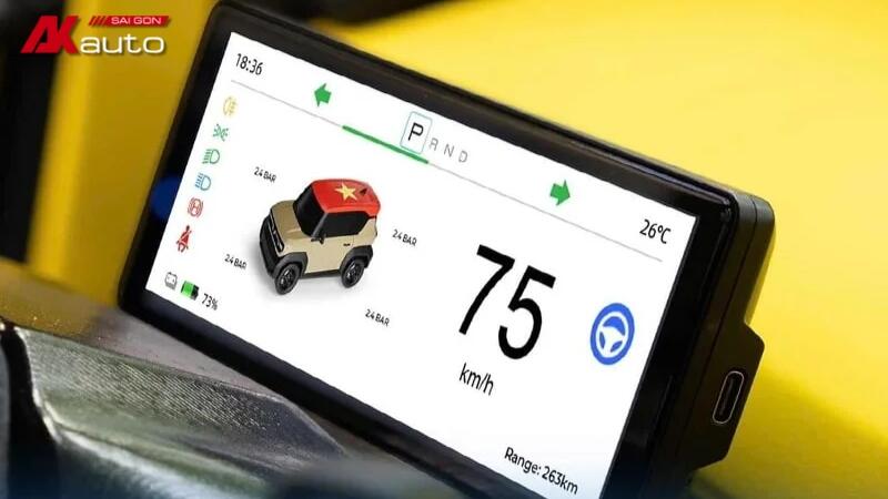- Hiển thị trực diện thông số: Theo dõi tốc độ, thời lượng pin và chế độ số ngay trước tầm mắt, giúp tài xế tập trung lái xe an toàn hơn.