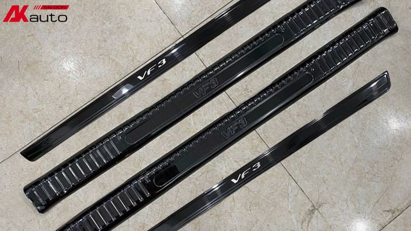 Thiết kế của nẹp bước chân VF3 thường có các đường vân nổi và logo VinFast, tạo nên vẻ sang trọng và cá tính cho xe. Sản phẩm có kích thước và hình dáng phù hợp với form xe VF3, đảm bảo tính thẩm mỹ và đồng bộ với ngoại thất xe.