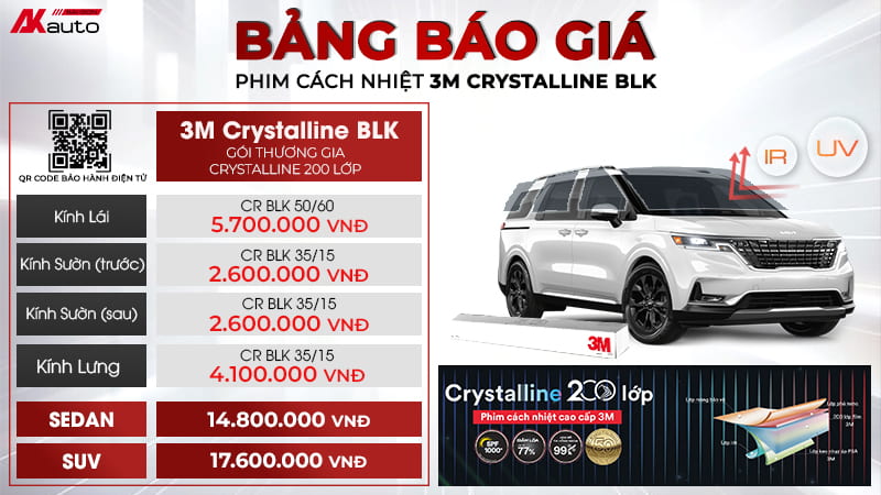 Phim cách nhiệt 3M Crystalline BLK Series (Trọn gói)
