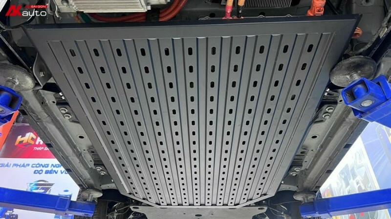 Khi di chuyển nhiều vào những ngày mưa hoặc đi qua các công trình đang thi công, xe không thể tránh khỏi việc bị bùn đất bắn lên gầm. Lúc này, tấm ốp như một lá chắn giúp bùn đất không bám trực tiếp lên vị trí pin xe. Ngoài ra, các lỗ tròn trên bề mặt tấm ốp giúp chất bẩn không đọng thành mảng lớn, nhờ đó việc vệ sinh cũng nhẹ nhàng và nhanh chóng hơn.