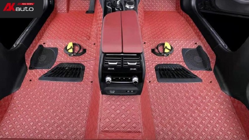 - Bên cạnh đó, thảm sàn sẽ được thi công cẩn thận, chính xác, đảm bảo ôm sát sàn xe, không xê lệch hay ảnh hưởng đến các thao tác đạp chân ga, chân phanh.