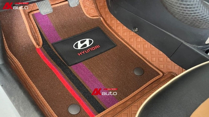 Nếu bạn muốn nâng cấp khoang nội thất ô tô trở nên sang trọng, thời thượng hơn thì có thể chọn thảm simili hoặc thảm da Nappa. Hai loại thảm này có đa dạng màu sắc, kiểu may, họa tiết, giúp chủ xe có thể cá nhân hóa xế yêu theo phong cách, sở thích của riêng mình. Đặc biệt, thảm Nappa có hơn 20 màu thảm nổi bật từ các màu trung tính cho đến các sắc nổi bật như cam, đỏ, xanh dương đậm, và có hơn 10 màu thảm rối như nâu, da bò thật, đen, kem, màu mận rượu vang,… Nhờ đó, việc phối màu trở nên linh hoạt và đồng bộ hơn cho khoang nội thất I10.