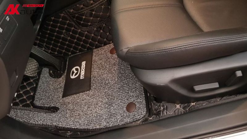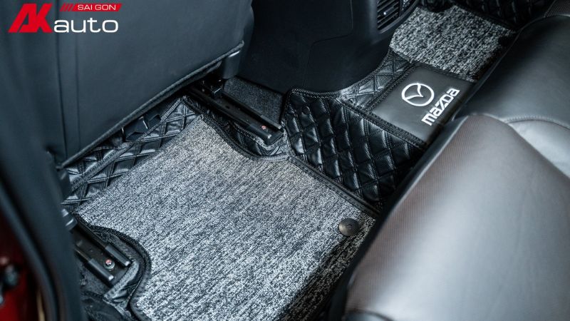 - Thiết kế 360 độ ôm khít sàn xe, được cắt may theo kích thước của từng đời xe Mazda nên bao phủ mọi góc cạnh, hạn chế bụi bẩn hay thấm nước xuống sàn.