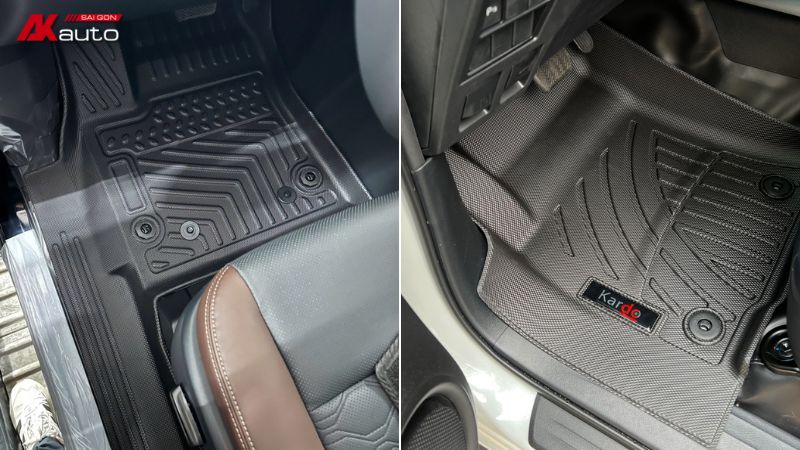 - Phân khúc trung – cao cấp: Với ngân sách tốt hơn, thảm nhựa đúc TPE hoặc thảm 5D/6D cao cấp mang lại trải nghiệm sử dụng ổn định, tính thẩm mỹ cao và độ bền vượt trội. Đây là lựa chọn phù hợp cho những chủ xe muốn đầu tư lâu dài và ít phát sinh chi phí thay mới.